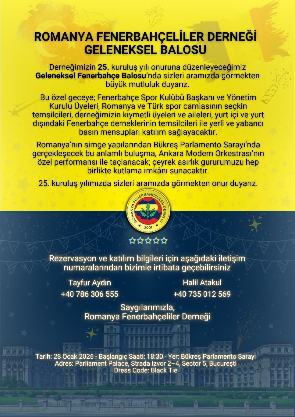 Geleneksel Fenerbahçe Balosu” Romanya Parlamento Sarayında 28 Ocak 2026 Çarşamba Geleneksel Fenerbahçe Balosu” Romanya Parlamento Sarayında 28 Ocak 2026 Çarşamba